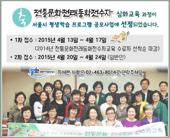 2015년 축!! 전통문화 전래동화 전수자 심화교육 - 서울시 평생학습 공모프로그램 선정!
