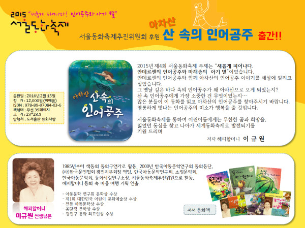 축! 발간!! 서울동화축제추진위원회 후원 "아차산 산 속의 인어공주" 출간!! 페이지 정보 작성자 관리자 댓글 0건 조회 747회 작성일 16-04-01 11:44 본문 축! 발간!! 서울동화축제추진위원회 후원 "아차산 산 속의 인어공주" 출간!! 목록 답변 이전글동화콘텐츠문화원과 함께하는 2016 서울동화축제 16.04.09 다음글동화사랑 스토리텔러 자격시험 1급 안내 - 2016년 상반기 16.03.14 댓글목록 댓글목록 등록된 댓글이 없습니다.