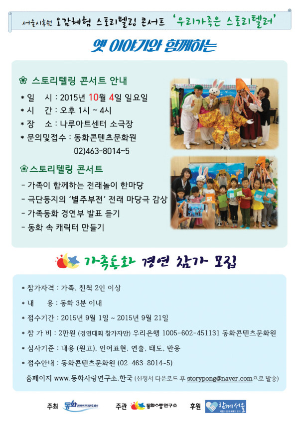 대회 2015년 서울시후원 오감체험 스토리텔링 콘서트 `우리가족은 스토리텔러` - 9/21 접수마감!!