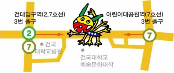 출입문을 통과해 중간쯤에는 건국대 문화예술대학 옆 능동로 분수광장과 주변 휴식공간에서는 공연, 이벤트, 거리극 동화구연 등이 진행된다.